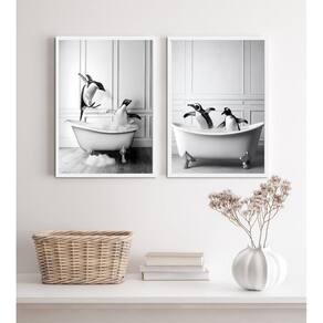 Kit 2 quadros para decorar banheiro- pinguins 33x24cm Moldura: madeira branca Informações do produto tire todas as suas dúvidas no descritivo abaixo: decoração para quarto, sala, cozinha, escritório, área gourmet e muito mais. Chega de paredes vazias medidas - cada peça tem 33x24cm a4 . Material do papel - papel fotográfico brilhante de altíssima resolução acabamento - todos os quadros são acompanhados de uma película de acetato para proteção da imagem. - os quadros são embalados de forma segura com plástico bolha com camada dupla de acordo com o tamanho dos quadros. Garantia - garantia de 3 meses. Meu quadro chegou. Como posso fixá-lo Você precisa apenas de um martelo e um prego, pois os quadros já vão acompanhados de penduradores. Esta é a forma mais indicada. Caso prefira, você pode utilizar uma fita dupla face neste caso, sugerimos de alta qualidade para evitar que descole e seu quadro caia . Como posso limpar meu quadro A limpeza é feita como um móvel comum da sua casa. Apenas um pano seco ou espanador são suficientes para tal Ean: 7897482714753
