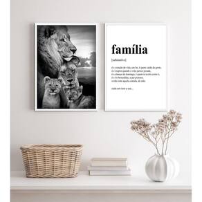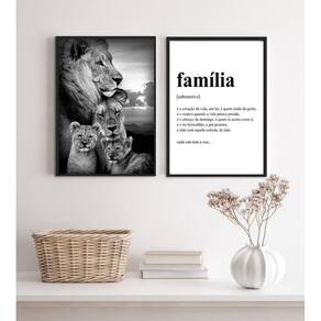 Kit 2 quadros para sala leões- família 45x34cm Moldura: madeira branca Informações do produto tire todas as suas dúvidas no descritivo abaixo: decoração para quarto, sala, cozinha, escritório, área gourmet e muito mais. Chega de paredes vazias. Medidas - cada peça tem 45x34cm a3 . Material do papel - papel fotográfico brilhante de altíssima resolução acabamento - todos os quadros são acompanhados de uma película de acetato para proteção da imagem. - os quadros são embalados de forma segura com plástico bolha com camada dupla de acordo com o tamanho dos quadros. Garantia - garantia de 3 meses. Meu quadro chegou. Como posso fixá-lo Você precisa apenas de um martelo e um prego, pois os quadros já vão acompanhados de penduradores. Esta é a forma mais indicada. Caso prefira, você pode utilizar uma fita dupla face neste caso, sugerimos de alta qualidade para evitar que descole e seu quadro caia . Como posso limpar meu quadro A limpeza é feita como um móvel comum da sua casa. Apenas um pano seco ou espanador são suficientes para tal Ean: 7899553126304