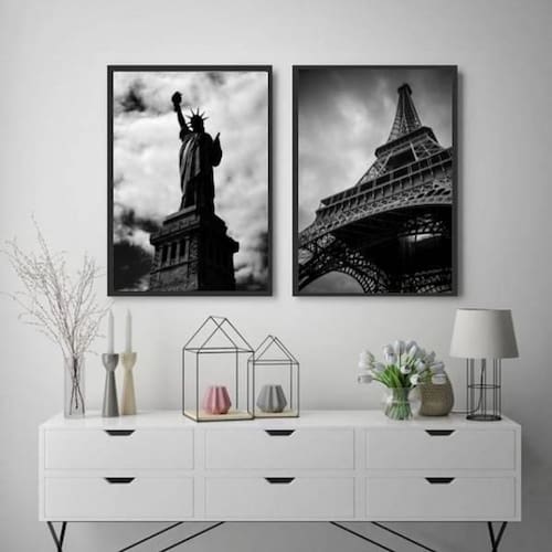 Kit 2 quadros paris e new york 24x18cm - com vidro Moldura: madeira preta Informações do produto tire todas as suas dúvidas no descritivo abaixo: decoração para quarto, sala, cozinha, escritório, área gourmet e muito mais. Chega de paredes vazias medidas - cada peça tem 24x18cm a5 . Material do papel - papel fotográfico brilhante de altíssima resolução acabamento - todos os quadros são acompanhados de vidro para proteção da imagem. - moldura em madeira maciça na cor preta e pendurador . - os quadros são embalados de forma segura com plástico bolha com camada dupla de acordo com o tamanho dos quadros. - de 3 meses. Meu quadro chegou. Como posso fixá-lo Você precisa apenas de um martelo e um prego, pois os quadros já vão acompanhados de penduradores. Esta é a forma mais indicada. Como posso limpar meu quadro A limpeza é feita como um móvel comum da sua casa. Apenas um pano seco ou espanador são suficientes para tal Ean: 7895142262682