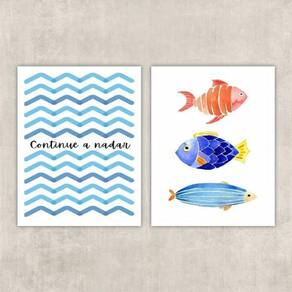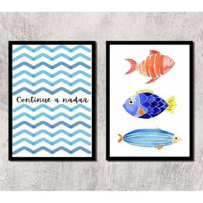 Kit 2 Quadros Peixes Continue A Nadar 24X18Cm - Com Vidro