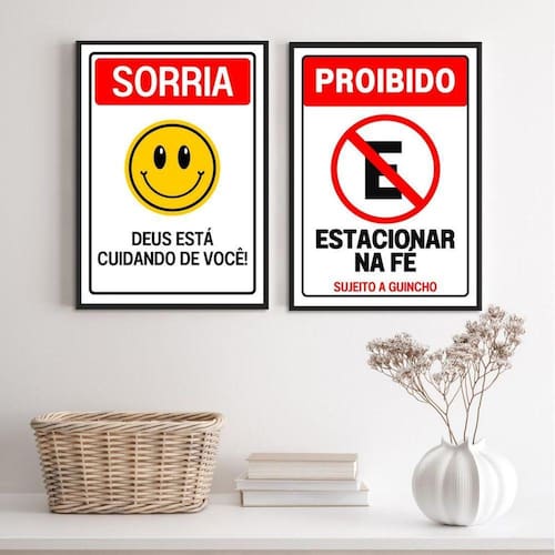 Kit 2 quadros placas cristãs - fé 33x24cm Moldura: madeira branca Informações do produto tire todas as suas dúvidas no descritivo abaixo: decoração para quarto, sala, cozinha, escritório, área gourmet e muito mais. Chega de paredes vazias medidas - cada peça tem 33x24cm a4 . Material do papel - papel fotográfico brilhante de altíssima resolução acabamento - todos os quadros são acompanhados de uma película de acetato para proteção da imagem. - os quadros são embalados de forma segura com plástico bolha com camada dupla de acordo com o tamanho dos quadros. Garantia - garantia de 3 meses. Meu quadro chegou. Como posso fixá-lo Você precisa apenas de um martelo e um prego, pois os quadros já vão acompanhados de penduradores. Esta é a forma mais indicada. Caso prefira, você pode utilizar uma fita dupla face neste caso, sugerimos de alta qualidade para evitar que descole e seu quadro caia . Como posso limpar meu quadro A limpeza é feita como um móvel comum da sua casa. Apenas um pano seco ou espanador são suficientes para tal