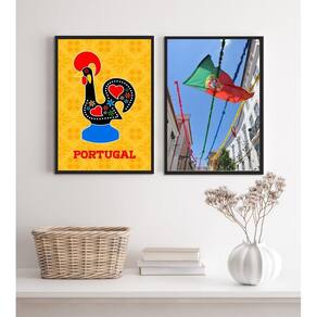 Kit 2 quadros portugal- galo barcelos e bandeira 45x34cm