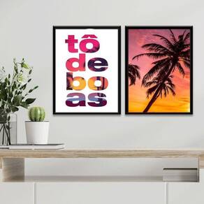 Kit 2 quadros praia zen - tô de boas 45x34cm Moldura: madeira preta Informações do produto tire todas as suas dúvidas no descritivo abaixo: decoração para quarto, sala, cozinha, escritório, área gourmet e muito mais. Chega de paredes vazias. Medidas - cada peça tem 45x34cm a3 . Material do papel - papel fotográfico brilhante de altíssima resolução acabamento - todos os quadros são acompanhados de uma película de acetato para proteção da imagem. - os quadros são embalados de forma segura com plástico bolha com camada dupla de acordo com o tamanho dos quadros. Garantia - garantia de 3 meses. Meu quadro chegou. Como posso fixá-lo Você precisa apenas de um martelo e um prego, pois os quadros já vão acompanhados de penduradores. Esta é a forma mais indicada. Caso prefira, você pode utilizar uma fita dupla face neste caso, sugerimos de alta qualidade para evitar que descole e seu quadro caia . Como posso limpar meu quadro A limpeza é feita como um móvel comum da sua casa. Apenas um pano seco ou espanador são suficientes para tal Ean: 7897098929503