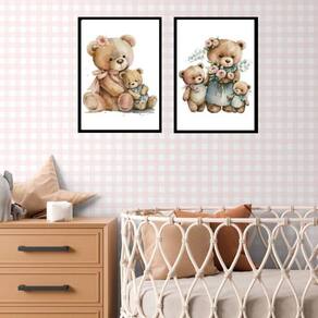 Kit 2 quadros quarto bebê ursinha vintage 33x24cm Moldura: madeira branca Informações do produto tire todas as suas dúvidas no descritivo abaixo: decoração para quarto, sala, cozinha, escritório, área gourmet e muito mais. Chega de paredes vazias medidas - cada peça tem 33x24cm a4 . Material do papel - papel fotográfico brilhante de altíssima resolução acabamento - todos os quadros são acompanhados de uma película de acetato para proteção da imagem. - os quadros são embalados de forma segura com plástico bolha com camada dupla de acordo com o tamanho dos quadros. Garantia - garantia de 3 meses. Meu quadro chegou. Como posso fixá-lo Você precisa apenas de um martelo e um prego, pois os quadros já vão acompanhados de penduradores. Esta é a forma mais indicada. Caso prefira, você pode utilizar uma fita dupla face neste caso, sugerimos de alta qualidade para evitar que descole e seu quadro caia . Como posso limpar meu quadro A limpeza é feita como um móvel comum da sua casa. Apenas um pano seco ou espanador são suficientes para tal