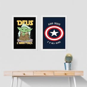 Kit 2 quadros quarto jovem cristão 24x18cm Moldura: madeira branca Informações do produto tire todas as suas dúvidas no descritivo abaixo: decoração para quarto, sala, cozinha, escritório, área gourmet e muito mais. Chega de paredes vazias medidas - cada peça tem 24x18cm a5 . Material do papel - papel fotográfico brilhante de altíssima resolução acabamento - todos os quadros são acompanhados de uma película de acetato para proteção da imagem. - os quadros são embalados de forma segura com plástico bolha com camada dupla de acordo com o tamanho dos quadros. Garantia - garantia de 3 meses. Meu quadro chegou. Como posso fixá-lo Você precisa apenas de um martelo e um prego, pois os quadros já vão acompanhados de penduradores. Esta é a forma mais indicada. Caso prefira, você pode utilizar uma fita dupla face neste caso, sugerimos de alta qualidade para evitar que descole e seu quadro caia . Como posso limpar meu quadro A limpeza é feita como um móvel comum da sua casa. Apenas um pano seco ou espanador são suficientes para tal