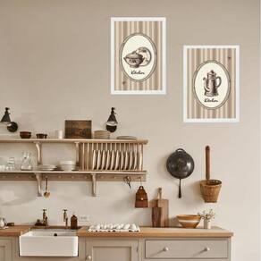 Kit 2 quadros retrô cozinha de vó 24x18cm Moldura: madeira branca Informações do produto tire todas as suas dúvidas no descritivo abaixo: decoração para quarto, sala, cozinha, escritório, área gourmet e muito mais. Chega de paredes vazias medidas - cada peça tem 24x18cm a5 . Material do papel - papel fotográfico brilhante de altíssima resolução acabamento - todos os quadros são acompanhados de uma película de acetato para proteção da imagem. - os quadros são embalados de forma segura com plástico bolha com camada dupla de acordo com o tamanho dos quadros. Garantia - garantia de 3 meses. Meu quadro chegou. Como posso fixá-lo Você precisa apenas de um martelo e um prego, pois os quadros já vão acompanhados de penduradores. Esta é a forma mais indicada. Caso prefira, você pode utilizar uma fita dupla face neste caso, sugerimos de alta qualidade para evitar que descole e seu quadro caia . Como posso limpar meu quadro A limpeza é feita como um móvel comum da sua casa. Apenas um pano seco ou espanador são suficientes para tal