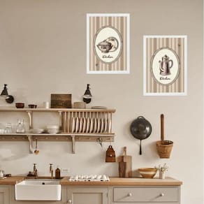 Kit 2 quadros retrô cozinha de vó 45x34cm - com vidro Moldura: madeira branca Informações do produto tire todas as suas dúvidas no descritivo abaixo: decoração para quarto, sala, cozinha, escritório, área gourmet e muito mais. Chega de paredes vazias medidas - cada peça tem 45x34cm a3 . Material do papel - papel fotográfico brilhante de altíssima resolução acabamento - todos os quadros são acompanhados de vidro para proteção da imagem. - moldura em madeira maciça na cor preta ou branca conforme produto escolhido e pendurador . - os quadros são embalados de forma segura com plástico bolha com camada dupla de acordo com o tamanho dos quadros. Garantia - garantia de 3 meses. Meu quadro chegou. Como posso fixá-lo Você precisa apenas de um martelo e um prego, pois os quadros já vão acompanhados de penduradores. Esta é a forma mais indicada. Como posso limpar meu quadro A limpeza é feita como um móvel comum da sua casa. Apenas um pano seco ou espanador são suficientes para tal