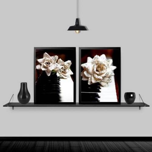 Kit 2 quadros rosas com partitura e piano 45x34cm Moldura: madeira branca Informações do produto tire todas as suas dúvidas no descritivo abaixo: decoração para quarto, sala, cozinha, escritório, área gourmet e muito mais. Chega de paredes vazias medidas - cada peça tem 45x34cm a3 . Material do papel - papel fotográfico brilhante de altíssima resolução acabamento - todos os quadros são acompanhados de uma película de acetato para proteção da imagem. - moldura em madeira maciça na cor branca e pendurador móvel que pode ser retirado facilmente caso deseje fixar com fita dupla face. - os quadros são embalados de forma segura com plástico bolha com camada dupla de acordo com o tamanho dos quadros. Marca: Não Informado