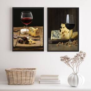 O Kit 2 Quadros Fotografias Rusticas Queijos E Vinhos 33X24Cm é perfeito para quem busca uma decoração charmosa e aconchegante para diversos ambientes, como quarto, sala, cozinha, escritório, área gourmet e muito mais. Composto por dois quadros com medidas de 33x24cm A4 , cada peça possui uma moldura de madeira preta que confere um toque rústico e elegante à decoração.