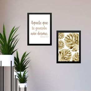 Kit 2 quadros salmo aquele que te guarda 24x18cm Moldura: madeira preta Informações do produto tire todas as suas dúvidas no descritivo abaixo: decoração para quarto, sala, cozinha, escritório, área gourmet e muito mais. Chega de paredes vazias medidas - cada peça tem 24x18cm a5 . Material do papel - papel fotográfico brilhante de altíssima resolução acabamento - todos os quadros são acompanhados de uma película de acetato para proteção da imagem. - os quadros são embalados de forma segura com plástico bolha com camada dupla de acordo com o tamanho dos quadros. Garantia - garantia de 3 meses. Meu quadro chegou. Como posso fixá-lo Você precisa apenas de um martelo e um prego, pois os quadros já vão acompanhados de penduradores. Esta é a forma mais indicada. Caso prefira, você pode utilizar uma fita dupla face neste caso, sugerimos de alta qualidade para evitar que descole e seu quadro caia . Como posso limpar meu quadro A limpeza é feita como um móvel comum da sua casa. Apenas um pano seco ou espanador são suficientes para tal