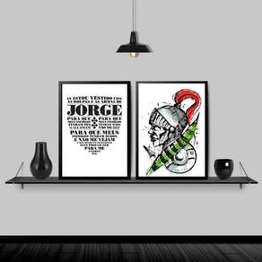 O Kit 2 Quadros São Jorge Espada Oração 45X34Cm - Com Vidro é perfeito para decorar qualquer ambiente da sua casa. Com moldura de madeira preta, esses quadros são ideais para quartos, salas, cozinhas, escritórios, áreas gourmet e muito mais. Cada peça do kit possui as medidas de 45x34cm A3 e é feita de papel fotográfico brilhante de altíssima resolução. Além disso, todos os quadros são acompanhados de vidro para proteção da imagem. A moldura em madeira maciça na cor preta dá um toque de elegância e sofisticação aos quadros, que também vêm com penduradores para facilitar a fixação. A limpeza dos quadros é simples e fácil, basta utilizar um pano seco ou espanador, assim como você faria com qualquer móvel da sua casa. Com de 3 meses, os quadros são embalados de forma segura com plástico bolha com camada dupla de acordo com o tamanho dos quadros, garantindo que eles cheguem em perfeito estado até você. Agora você pode dar vida às suas paredes vazias com o Kit 2 Quadros São Jorge Espada Oração 45X34Cm - Com Vidro. Não perca tempo e adquira já o seu! Especificações técnicas: - Título: Kit 2 Quadros São Jorge Espada Oração 45X34Cm - Com Vidro - Descrição: Kit com 2 quadros com a imagem de São Jorge com espada e oração - Moldura: Madeira preta - Material do papel: Papel fotográfico brilhante de altíssima resolução - Medidas: Cada peça tem 45x34cm A3 - Acompanha vidro para proteção da imagem - Moldura em madeira maciça na cor preta - Penduradores inclusos para facilitar a fixação - Embalagem segura com plástico bolha com camada dupla - : 3 meses Perguntas frequentes: 1. Como posso fixar meu quadro? R: Os quadros já vão acompanhados de penduradores, basta utilizar um martelo e um prego para fixá-los na parede. 2. Como posso limpar meu quadro? R: A limpeza é simples, basta utilizar um pano seco ou espanador, assim como você faria com qualquer móvel da sua casa. Deixe sua casa mais bonita e cheia de personalidade com o Kit 2 Quadros São Jorge Espada Oração 45X34Cm - Com Vidro. Aproveite essa oportunidade e adquira já o seu! Ean: 7891438411604