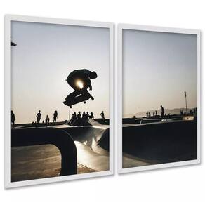 Kit 2 quadros skatista manobra aérea pista 45x34cm Cor: moldura preta Informações do produto tire todas as suas dúvidas no descritivo abaixo: decoração para quarto, sala, cozinha, escritório, área gourmet e muito mais. Chega de paredes vazias. Medidas - cada peça tem 45x34cm a3 . Material do papel - papel fotográfico brilhante de altíssima resolução acabamento - todos os quadros são acompanhados de uma película de acetato para proteção da imagem. - os quadros são embalados de forma segura com plástico bolha com camada dupla de acordo com o tamanho dos quadros. - de 3 meses. Meu quadro chegou. Como posso fixá-lo Você precisa apenas de um martelo e um prego, pois os quadros já vão acompanhados de penduradores. Esta é a forma mais indicada. Caso prefira, você pode utilizar uma fita dupla face neste caso, sugerimos de alta qualidade para evitar que descole e seu quadro caia . Como posso limpar meu quadro A limpeza é feita como um móvel comum da sua casa. Apenas um pano seco ou espanador são suficientes para tal