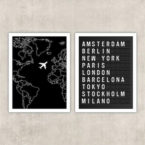 Kit 2 quadros viagem placa de aeroporto 24x18cm - com vidro Moldura: madeira preta Informações do produto tire todas as suas dúvidas no descritivo abaixo: decoração para quarto, sala, cozinha, escritório, área gourmet e muito mais. Chega de paredes vazias medidas - cada peça tem 24x18cm a5 . Material do papel - papel fotográfico brilhante de altíssima resolução acabamento - todos os quadros são acompanhados de vidro para proteção da imagem. - moldura em madeira maciça na cor preta e pendurador . - os quadros são embalados de forma segura com plástico bolha com camada dupla de acordo com o tamanho dos quadros. Garantia - garantia de 3 meses. Meu quadro chegou. Como posso fixá-lo Você precisa apenas de um martelo e um prego, pois os quadros já vão acompanhados de penduradores. Esta é a forma mais indicada. Como posso limpar meu quadro A limpeza é feita como um móvel comum da sua casa. Apenas um pano seco ou espanador são suficientes para tal