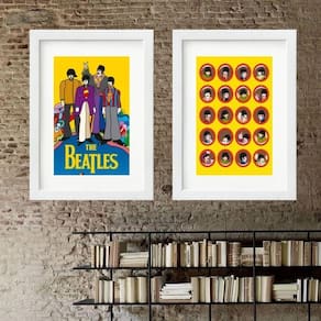 Kit 2 quadros yellow submarine - 60x48cm Moldura: madeira preta Informações do produto tire todas as suas dúvidas no descritivo abaixo: decoração para quarto, sala, cozinha, escritório, área gourmet e muito mais. Chega de paredes vazias medidas - cada peça tem 60x48cm . Material do papel - papel fotográfico brilhante de altíssima resolução acabamento - todos os quadros são acompanhados de vidro para proteção da imagem. - moldura em madeira maciça na cor preta ou branca conforme produto escolhido e pendurador. - paspatur branco com 7cm de largura - os quadros são embalados de forma segura com plástico bolha com camada dupla de acordo com o tamanho dos quadros. Garantia - garantia de 3 meses. Meu quadro chegou. Como posso fixá-lo Você precisa apenas de um martelo e um prego, pois os quadros já vão acompanhados de penduradores. Esta é a forma mais indicada. Como posso limpar meu quadro A limpeza é feita como um móvel comum da sua casa. Apenas um pano seco ou espanador são suficientes para tal