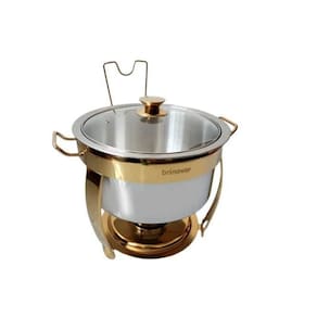 Kit 2un rechaud redondo banho maria dourado 8 litros O rechaud redondo 8 litros tem a estrutura e o fogareiro em aço inox altamente durável, resistente e fácil de limpar. Possui a tampa em vidro temperado, com saída de vapor. Vem com um prático apoio para tampa. A da cuba é muito simples, podendo ser realizada durante o uso do produto, sem prejudicar o serviço. Ideal para quem tem um estabelecimento, vai fazer um evento ou sempre gosta de receber um número maior de pessoas em casa. Especificações técnicas: Marca: brinovar Cor: dourado Formato: redondo Material: aço inoxidável 201 Dimensões do produto montado: Comprimento: 33 cm Largura: 40 cm Altura: 35 cm Capacidade: 8 litros Quantidade de cubas: 1 un Quantidade de acendedor: 1 un Recipiente para comida: 28cm diametro x 13,5cm altura Recipiente para água banho maria : 29,5cm diametro x 15,5cm altura Tipo de acendedor: fogareiro 9cm c x 6cm a Ambiente recomendado: buffet, refeitório, cozinha e festas : 90 dias Cuidados: Esta peça contém bordas cortantes, manusear com cuidado. Não use palha de aço, produtos químicos, não usar ácido muriático, água sanitária ou qualquer outro solvente para a limpeza. Enxaguar e secar bem a peça após o uso. Nunca deixar objetos metálicos sobre a peça por períodos muito longos, para evitar a corrosão. Para manter o brilho do seu rechaud, recomendamos o uso da pasta para polir e remover manchas em superfícies de aço inoxidável. Itens inclusos: 2 estrutura - 1 estrutura para cada rechaud 2 cubas para comida - 1 cuba de comida para cada rechaud 2 cubas para água banho maria - 1 cuba de agua para cada rechaud 2 tampas de vidro com respiro - 1 tampa de vidro com respiro para cada rechaud 2 fogareiros - 1 fogareiro para cada rechaud 2 suportes traseiro para tampa - 1 suporte para cada rechaud
