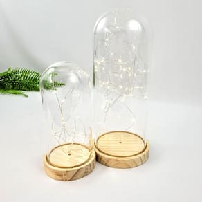 Apresentamos nossa Cúpula de Vidro com Madeira e Iluminação LED, uma peça de decoração que combina beleza natural com uma suave iluminação LED. Esta cúpula é perfeita para criar um ambiente encantador e aconchegante em sua casa ou para dar um toque mágico a eventos especiais. Deixe a luz brilhar e a elegância florescer.