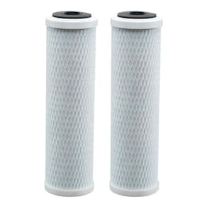 Kit com 2 filtros de carvão ativado, 9.3/4 de altura, para carcaças. Remove cloro, odores e sedimentos, melhorando a qualidade da água.Tipo