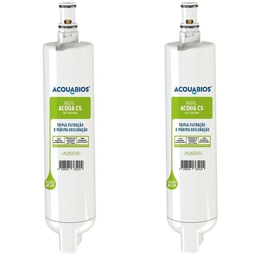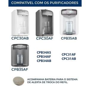 Kit com 2 refis compatíveis com purificadores Consul Facilite Acqua CP30/34/35, com tripla filtração, vida útil de 2500L, vazão de 60 L/H e pressão de 19,6 a 392 kPa.Tipo