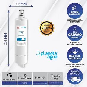 Refil para purificador de água com sistema de filtragem composto por polipropileno, carvão ativado e borracha de vedação. Indicado para modelos de purificadores com encaixe compatível.