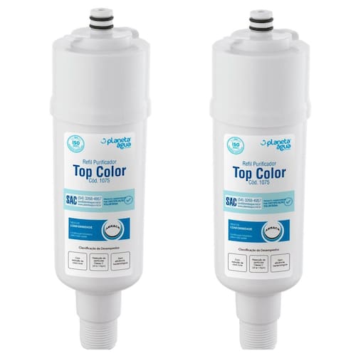 Kit com 2 refis para purificadores Colormaq. Elimina odores, sabores desagradáveis, retém partículas como barro, areia, ferrugem e sedimentos, reduz o cloro e controla a proliferação de bactérias.Tipo