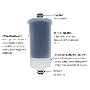 Vantagens e Benefícios - Elimina odores - Elimina sabor desagradável - Reduz o cloro - Retém impurezas sólidas - Contra bactérias