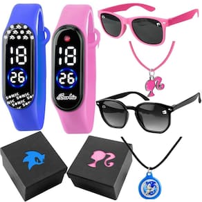 Kit 2 Relógio Digital Infantil 2 Óculos 2 Colar Rosa e Preto Kit Relógio Digital Infantil Orizom Kids com Óculos de Sol, Colar e Caixa Premium - Temática Homem de Ferro - Relógio digital infantil em formato bracelete, pulseira ajustável em silicone, cor vermelha, temática do Homem de Ferro - Óculos de sol infantil com lentes UV, em acetato, temática do Homem de Ferro - Colar infantil preto ajustável, feito em materiais sintéticos, pingente em formato da logo do Homem de Ferro - Caixa ultra premium com temática do Homem de Ferro, ideal para armazenar os itens Este kit exclusivo da linha Orizom Kids é perfeito para crianças a partir de 5 anos, oferecendo estilo, durabilidade e a emocionante temática do Homem de Ferro. Dê ao seu pequeno fã do Homem de Ferro o presente perfeito com este kit completo, proporcionando proteção, estilo e diversão. Kit Infantil Barbie Premium - Relógio, Colar, Óculos e Caixa Exclusiva O kit inclui: - Relógio infantil em formato de bracelete, digital e com iluminação LED. À prova d'água, com pulseira de silicone ajustável. - Colar infantil emborrachado, totalmente ajustável, para não incomodar a pequena. - Pingente da Barbie em metal, na cor rosa, com o icônico logotipo da marca. - Óculos de sol infantil, da marca Orizom, modelo kids, com temática da Barbie e proteção UV. - Caixa ultra premium com temática da Barbie, perfeita para armazenar e organizar os acessórios.