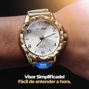 Especificações Técnicas: 1. Relógio Analógico Dourado: - Cor: Dourado - Prova D'água: Sim - Pulseira de Silicone Ajustável: Serve em qualquer tamanho de pulso - Material da Pulseira: Silicone 1. Relógio Analógico Rose: - Cor: Rose - Prova D'água: Sim - Pulseira de Silicone Ajustável: Serve em qualquer tamanho de pulso - Material da Pulseira: Silicone