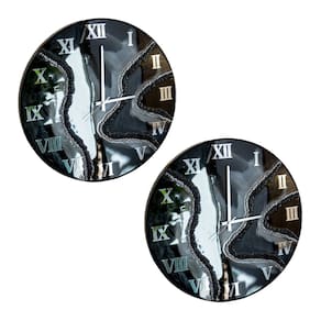 Kit 2 Relógios De Parede Grande 60cm Luxo - Fundo Preto Com Prata