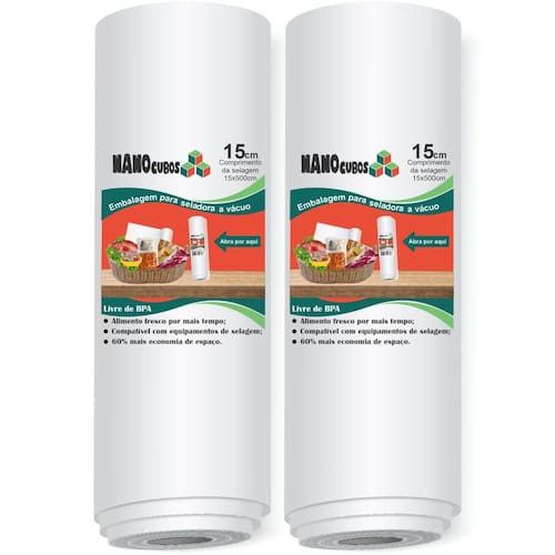 Kit 2 Rolos Nanocubos 15x500 Sacos Ranhura Seladora A Vácuo Embalagens 2 rolos NANOCUBOS 15 cm X 500 cm para seladoras a vácuo. Embalar produtos a vácuo é a melhor forma de mantê-los sempre protegidos por muito mais tempo. Ao embalar alimentos, a validade deles é completamente estendida, pois eles não terão nenhum contato com o ar e serão pouco afetados pela ação do tempo. Você pode embalar tanto alimentos crus como alimentos já preparados para serem consumidos em outro momento. Você economiza muito dinheiro e evita o desperdício Os sacos para vácuo Nanocubos são produzidos com alta tecnologia em Nylon Poli seguindo padrões de qualidade internacional. Possuem 12 micras, 3 barreiras de proteção, sem presença de BPA Não tóxicos e funcionam com equipamentos de embalagens a vácuo. Além de alimentos, é possível utilizá-lo com objetos pessoais, documentos ou utensílios, conservando-os como novos por muito tempo e aumentando sua vida útil. Características do produto: - Aparência: Transparente com ranhuras; - Forma disponível: Rolos, é possível montar sacos do tamanho que quiser; - Quanto ao uso: Reciclável pode utilizar várias vezes seguidas; - Iniciação ao rasgo: Difícil; - Propagação ao rasgo: Difícil; - Temperatura máxima de uso: 120 C; - Resistência a ácidos: Excelente mantendo o cheiro do alimento; - Resistência a óleos e gorduras: Excelente; - Segurança alimentar: Conserva o alimento. Conteúdo da Caixa 2- Rolos 15 cm X 500 cm. Políticas da loja: - : contra defeitos de fabricação, 90 dias; - Prazo de envio: imediato após a confirmação do pagamento; - Cancelamento: Realizamos a devolução total do dinheiro; Qualquer dúvida estamos à disposição Ean: 7896296926246