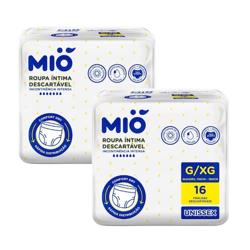 A Mió roupa íntima para o dia a dia! Imagine uma roupa íntima que protege com conforto e ainda cabe no seu bolso. A Roupa Íntima Mió foi desenvolvida exclusivamente para oferecer o bem-estar que você merece com a qualidade que você precisa! Pensamos de forma especial em uma solução que atendesse pessoas com incontinência urinária intensa da melhor forma possível. E adivinhe: deu certo! Cuidado em cada detalhe Dermatologicamente testados, nossos produtos garantem o cuidado com a pele, prevenindo qualquer tipo de irritação. Também contam um neutralizador de odores para que você se sinta fresco e confiante durante todo o dia. Máxima segurança e conforto Pensado para proporcionar liberdade e conforto, nosso shorts conta com uma cintura elástica e respirável, que se ajusta perfeitamente ao corpo. É a segurança que você busca aliada à praticidade de uma roupa íntima descartável. Com ele, você pode viver cada momento com tranquilidade. Tecnologia da Mió qualidade? Com a exclusiva tecnologia Comfort Dry, a Roupa íntima da Mió garante uma rápida absorção, mantendo você seco e confortável. Ela ainda contém uma distribuição adequada de fluidos e barreiras anti-vazamento, mantendo o ajuste ideal ao corpo em qualquer fluxo. Com Mió Adulto, você está protegido com um produto que trabalha para o seu bem-estar a cada instante. Economia garantida Além de todo o conforto e proteção, nossa roupa íntima vem em embalagens com 16 unidades, proporcionando mais economia para o seu bolso. É a combinação perfeita de qualidade e valor que você pode confiar! Ean: 7891522042547