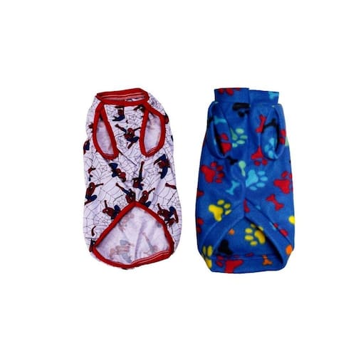 Kit pijama e suéter para cachorro. - pijama confeccionada em malha pv poliéster com viscose na cor branca; - pijama estmpado; - acabamento do pijama em cotton vermelho; - pijama super fresquinho e gostoso; - tamanho do pijama: G; - suéter em tecido soft, super macio e quentinho; - o suéter é ótimo para os dias de frio; - suéter na cor azul com patas coloridas; - tamanho do suéter: M; Medidas pijama - tamanho G: Pescoço: 30 cm de circunferência; abdômen/tórax: 42 cm de circunferência; comprimento: 40 cm. Medidas suéter - tamanho M: Pescoço: 26 cm de circunferência; abdômen/tórax: 38 cm de circunferência; comprimento: 36 cm. Marca: Nicapet Ean: 7891981588808