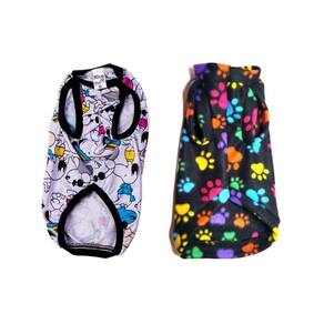 Kit pijama e suéter para cachorro. - pijama confeccionada em malha pv poliéster com viscose na cor branca; - pijama estampado; - acabamento do pijama em cotton preto; - pijama super fresquinho e gostoso; - tamanho do pijama: G; - suéter em tecido soft, super macio e quentinho; - o suéter é ótimo para os dias de frio; - suéter na cor: preta com detalhes em colorido; - tamanho do suéter: M; Medidas pijama - tamanho G: Pescoço: 30 cm de circunferência; abdômen/tórax: 42 cm de circunferência; comprimento: 40 cm. Medidas suéter - tamanho M: Pescoço: 26 cm de circunferência; abdômen/tórax: 38 cm de circunferência; comprimento: 36 cm. Marca: Nicapet