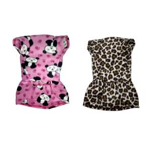 Kit 2 vestidos de inverno para cachorro. - vestidos no tecido soft; - lavável em maquina e na mão; - ótimo para usar nos dias de frio; - vestido P na cor: onça; - vestido M na cor: rosa panda; - laço na cor do vestido; - vestido P e M Medida - tamanho P: Pescoço - 19 cm de circunferência; abdômen/tórax: 32 cm de circunferência; comprimento: 30 cm. Medida - tamanho M: Pescoço - 26 cm de circunferência; abdômen/tórax: 38 cm de circunferência; comprimento: 36 cm. Marca: Nicapet