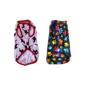 Kit pijama e suéter para cachorro. - pijama confeccionada em malha pv poliéster com viscose na cor branca; - pijama estampado; - acabamento do pijama em cotton vermelho; - pijama super fresquinho e gostoso; - tamanho do pijama: EG; - suéter em tecido soft, super macio e quentinho; - o suéter é ótimo para os dias de frio; - suéter na cor preto com detalhes em colorido; - tamanho do suéter: GG; Medidas pijama - tamanho EG: Pescoço: 40 cm de circunferência; abdômen/tórax: 58 cm de circunferência; comprimento: 56 cm. Medidas suéter - tamanho GG: Pescoço: 32 cm de circunferência; abdômen/tórax: 50 cm de circunferência; comprimento: 46 cm. Marca: Nicapet