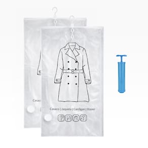 Kit 2 Sacos a Vácuo Organizador de Roupas 70x130cm com Cabide + Bomba