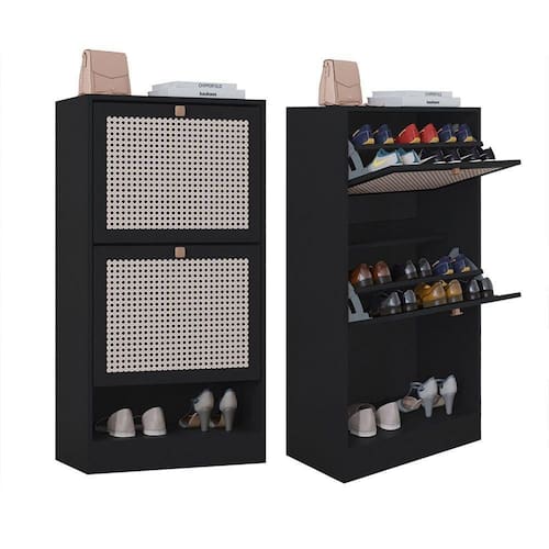 Kit 2 Sapateiras Tropical 2 Portas Multiuso Vertical Poquema Preto