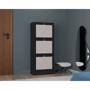 Espaco Otimizado: Com 3 portas, o movel vertical ajuda a armazenar seus calcados de forma inteligente, mantendo tudo organizado e de facil acesso.