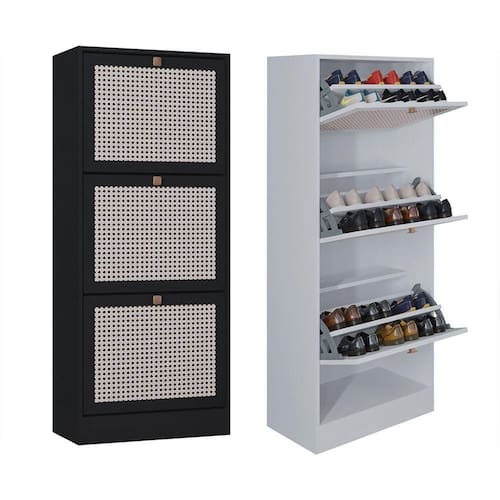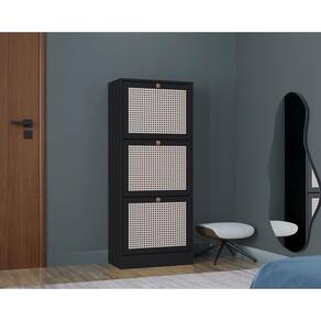 Kit 2 Sapateiras Tropical 3 Portas Multiuso Vertical Poquema Preto/branco