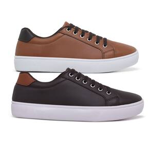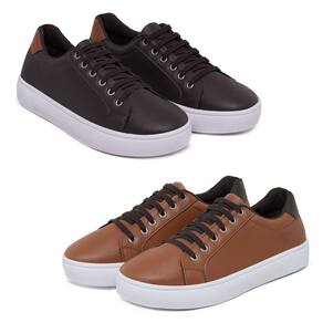 Kit 2 Sapatênis Casual Masculino Confort SF Ajuste Elástico - 41 - Marrom