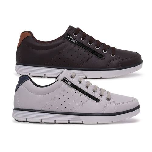 Kit 2 Sapatenis Casual Social Conforto com Zíper e Cadarço - 41 - Marrom Chocolate