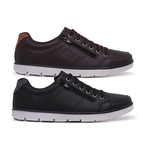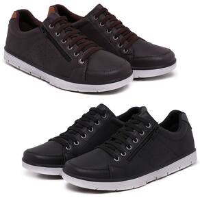 Kit 2 Sapatenis Casual Social Conforto com Zíper e Cadarço - 38 - Preto