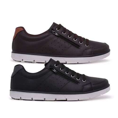Kit 2 Sapatenis Casual Social Conforto com Zíper e Cadarço - 42 - Preto