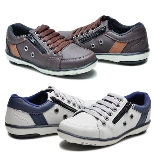 Kit 2 Sapatênis Infantil Casual Fechamento Elástico e Zíper - 31 - Marrom