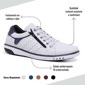 Kit 2 Sapatênis Masculino Casual Fechamento Elástico e Zíper - 38 - Branco