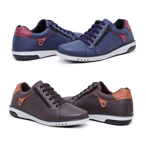 Kit 2 Sapatênis Masculino Casual Fechamento Elástico e Zíper - 41 - Marrom