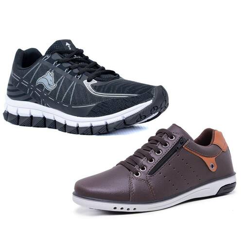 Kit 2 Sapatênis Masculino Ziper & Tênis Casual com cadarço - 38 - Marrom Chocolate
