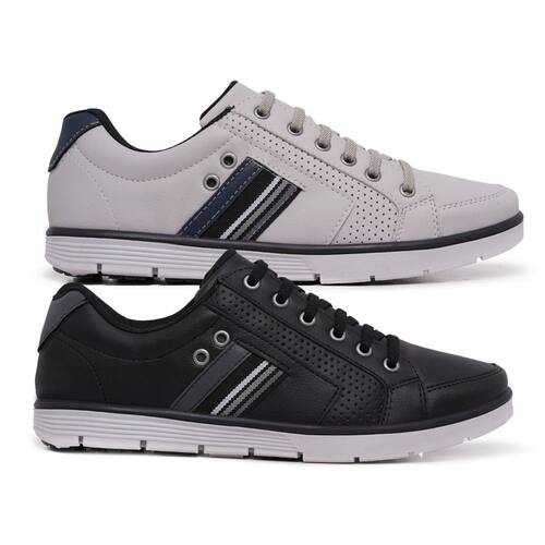 Kit 2 Sapatênis Masculinos com Zíper e Cadarço Elástico - 39 - Branco