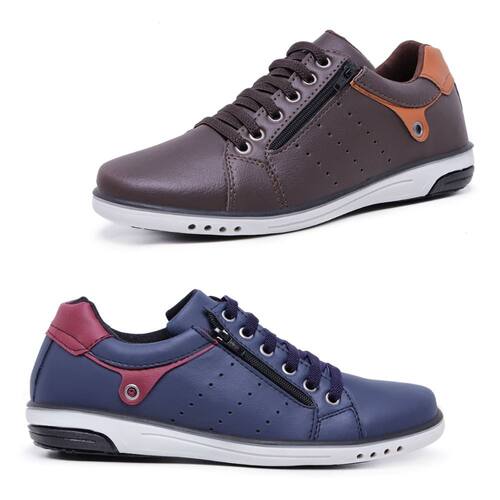Kit 2 Sapatênis Masculinos Estilo Casual Zíper e Elástico - 45 - Azul Marinho