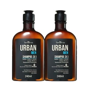 Kit 2 Shampoo 3 em 1 Barba Cabelo Bigode Masculino 240ml Urban Men Farmaervas