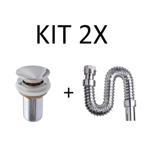 Kit com 2 Sifões Cromados + 2 Válvulas Pia Cuba Click Cromadas TOTAL DE 4 ITENS.